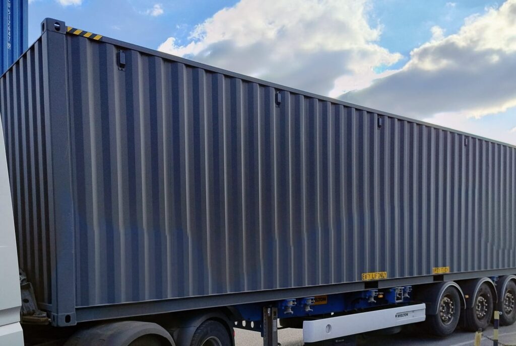 - Kontenery morskie 40′ – oferują podwójną pojemność w porównaniu do wersji 20′, dlatego świetnie sprawdzają się w dużych projektach logistycznych i jako magazyn zewnętrzny do różnych typów towaru.