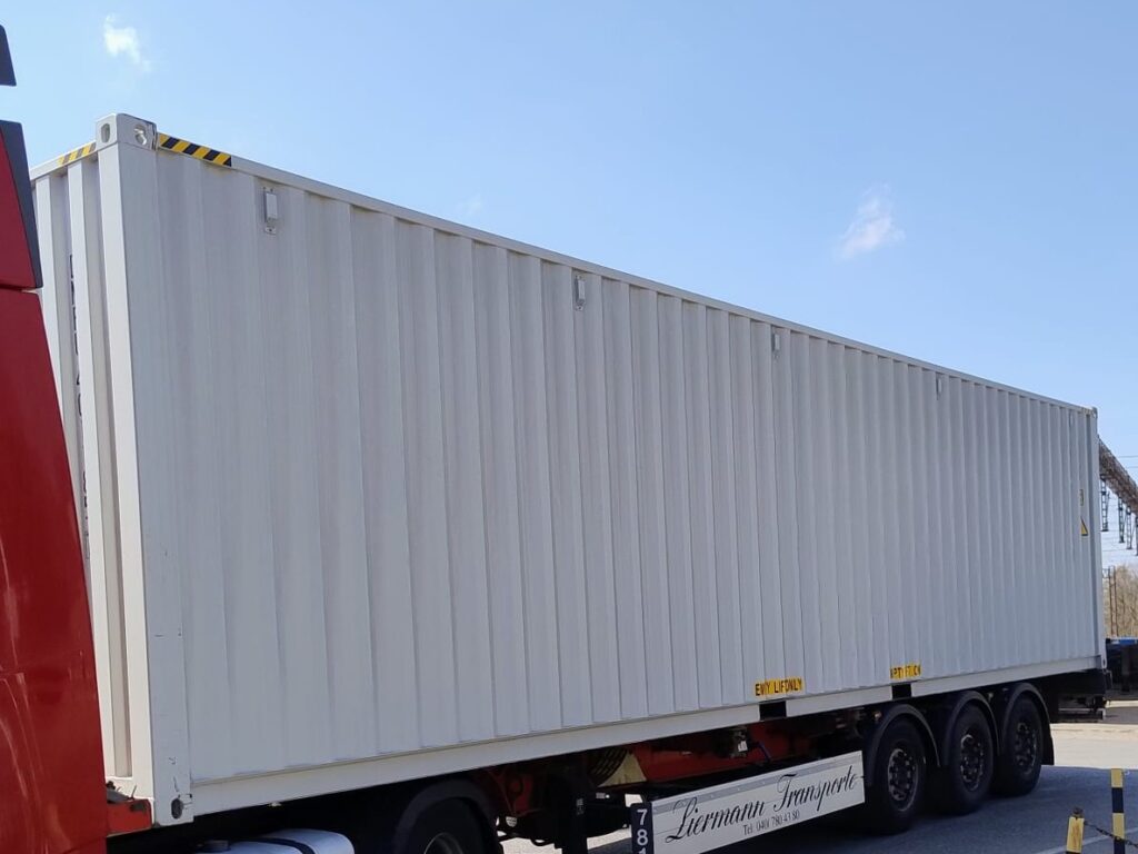 - Kontenery 40′ High Cube (HC) – z tak dużych kontenerów z powodzeniem można stworzyć przestrzenie mieszkalne (po odpowiedniej adaptacji wnętrza).