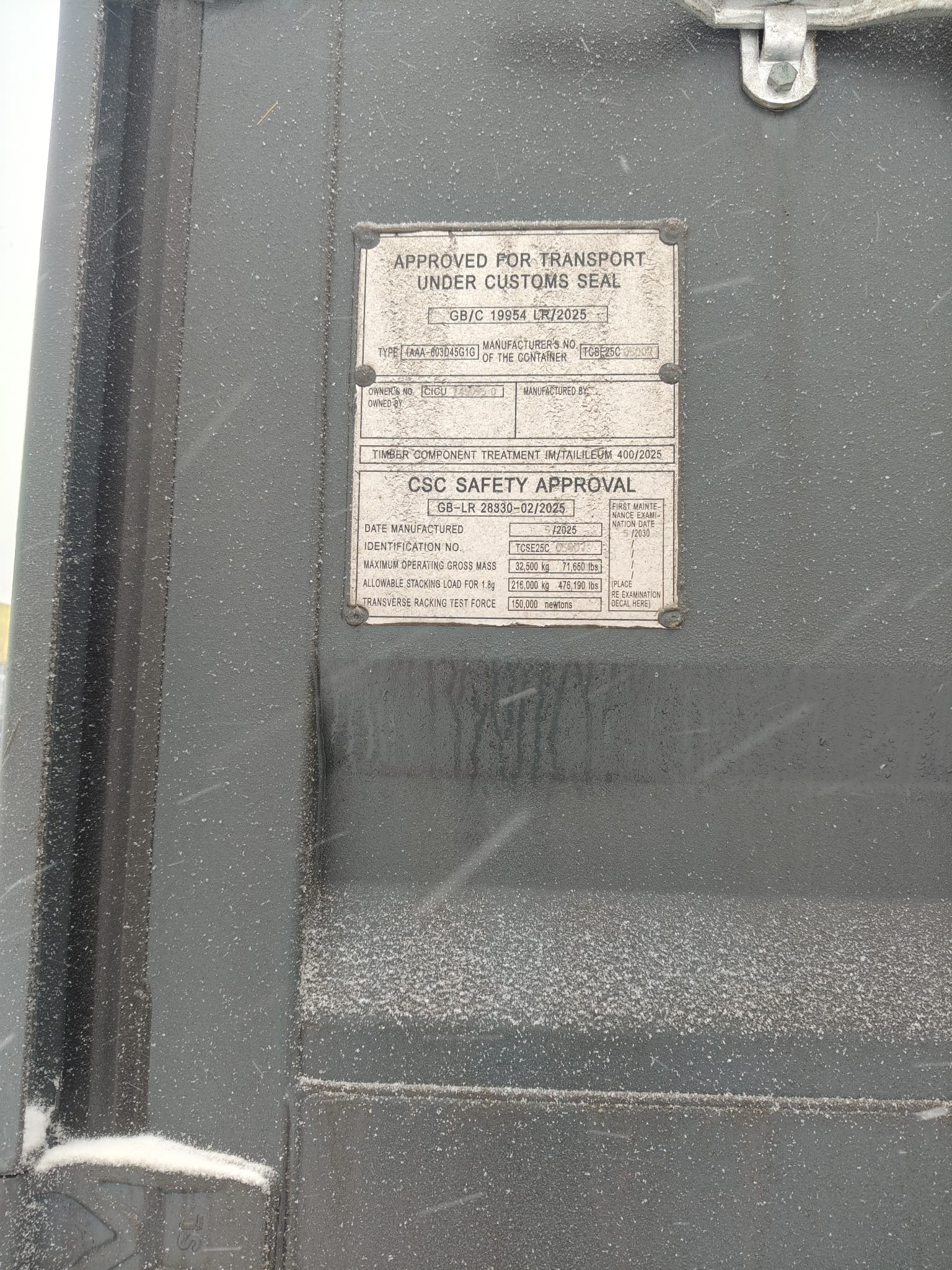 | Typ kontenera | 12m/40'HC |