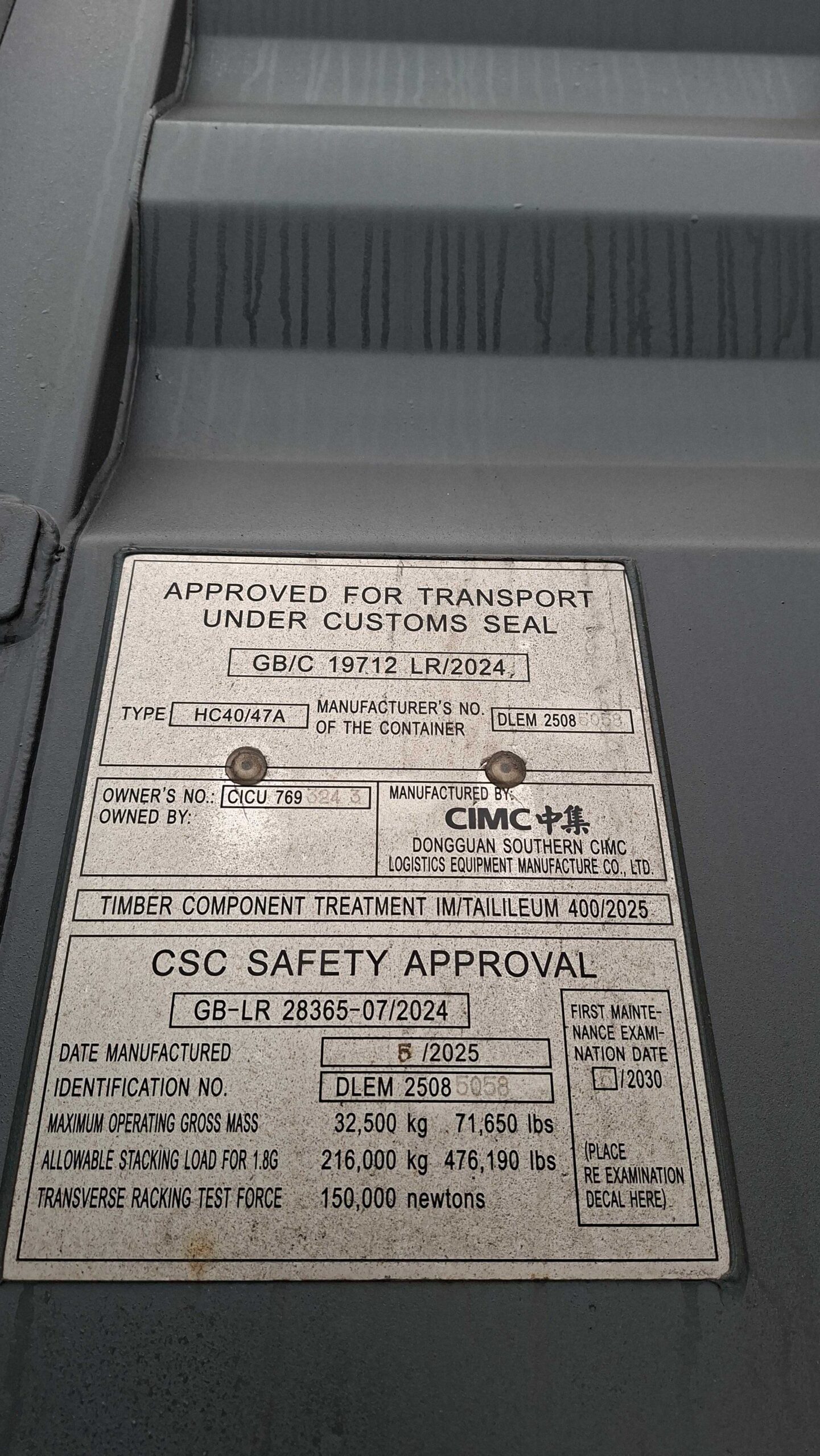 12m (40’HC) Kontener morski CICU7693243