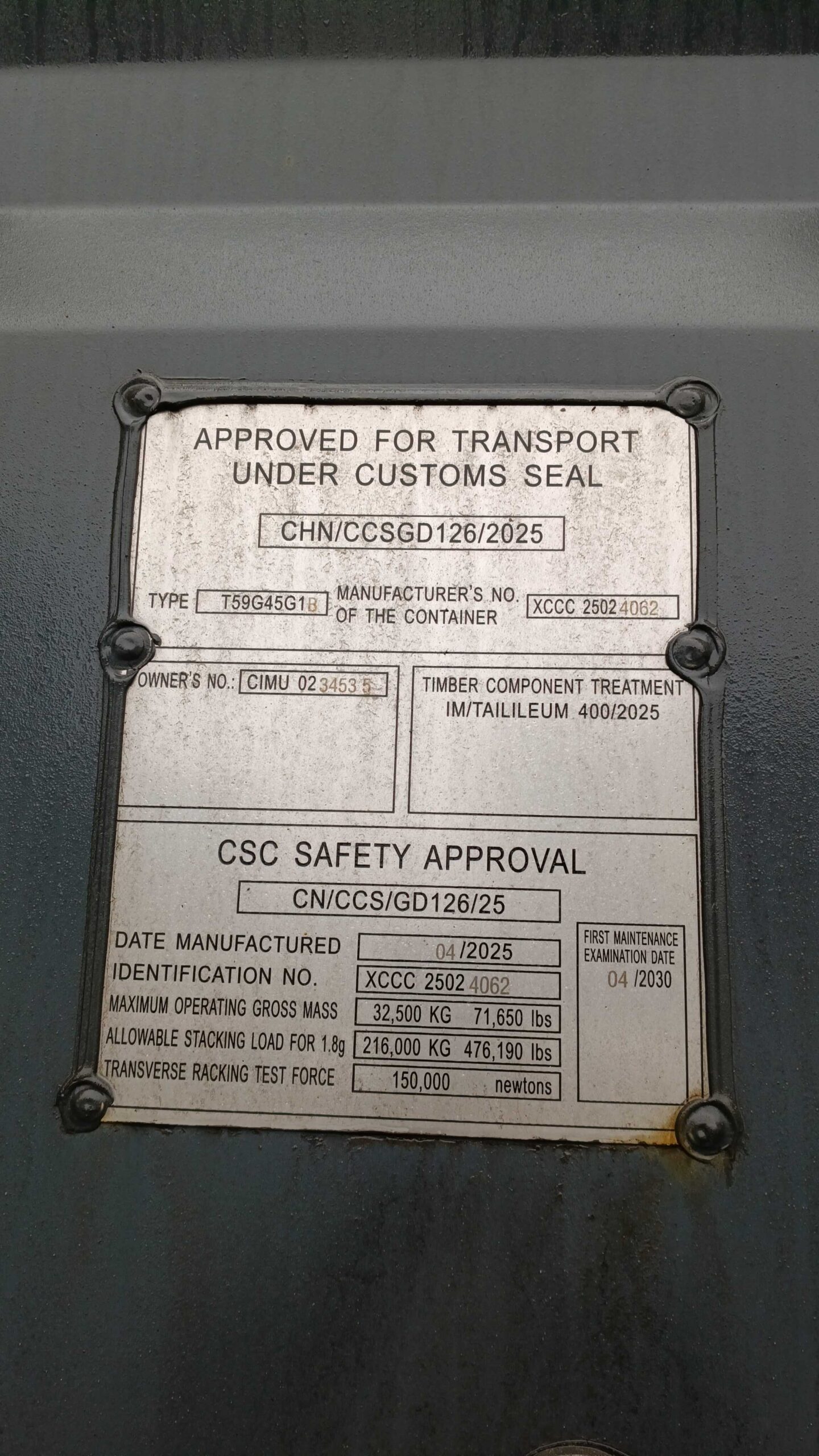 12m (40’HC) Kontener morski CIMU0234535
