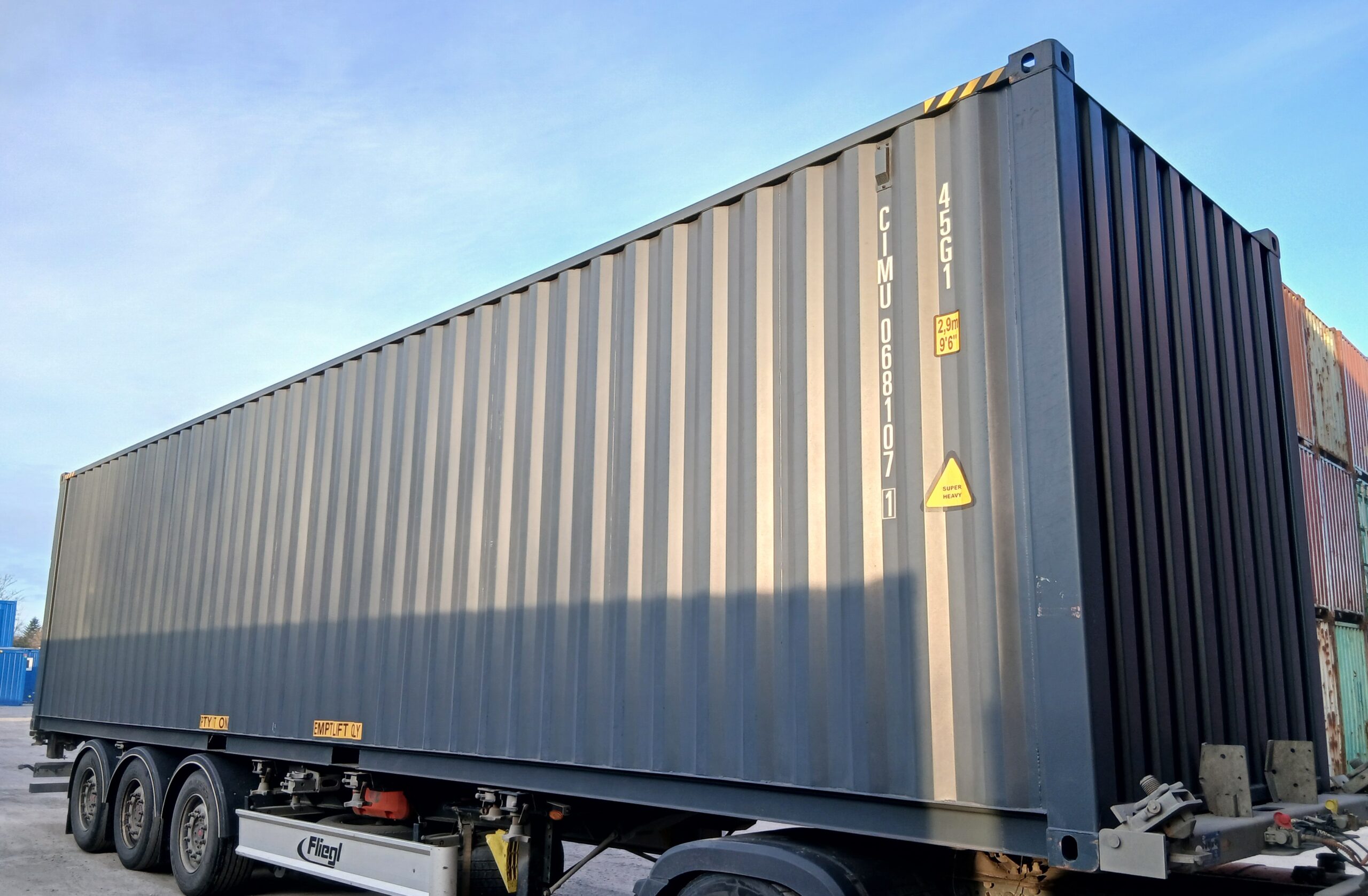 • 40-stopowe kontenery typu High Cube – mają dodatkową wysokość (w porównaniu do standardowych kontenerów), co zapewnia więcej przestrzeni w pionie i jest szczególnie przydatne przy transporcie lub magazynowaniu wysokich ładunków.