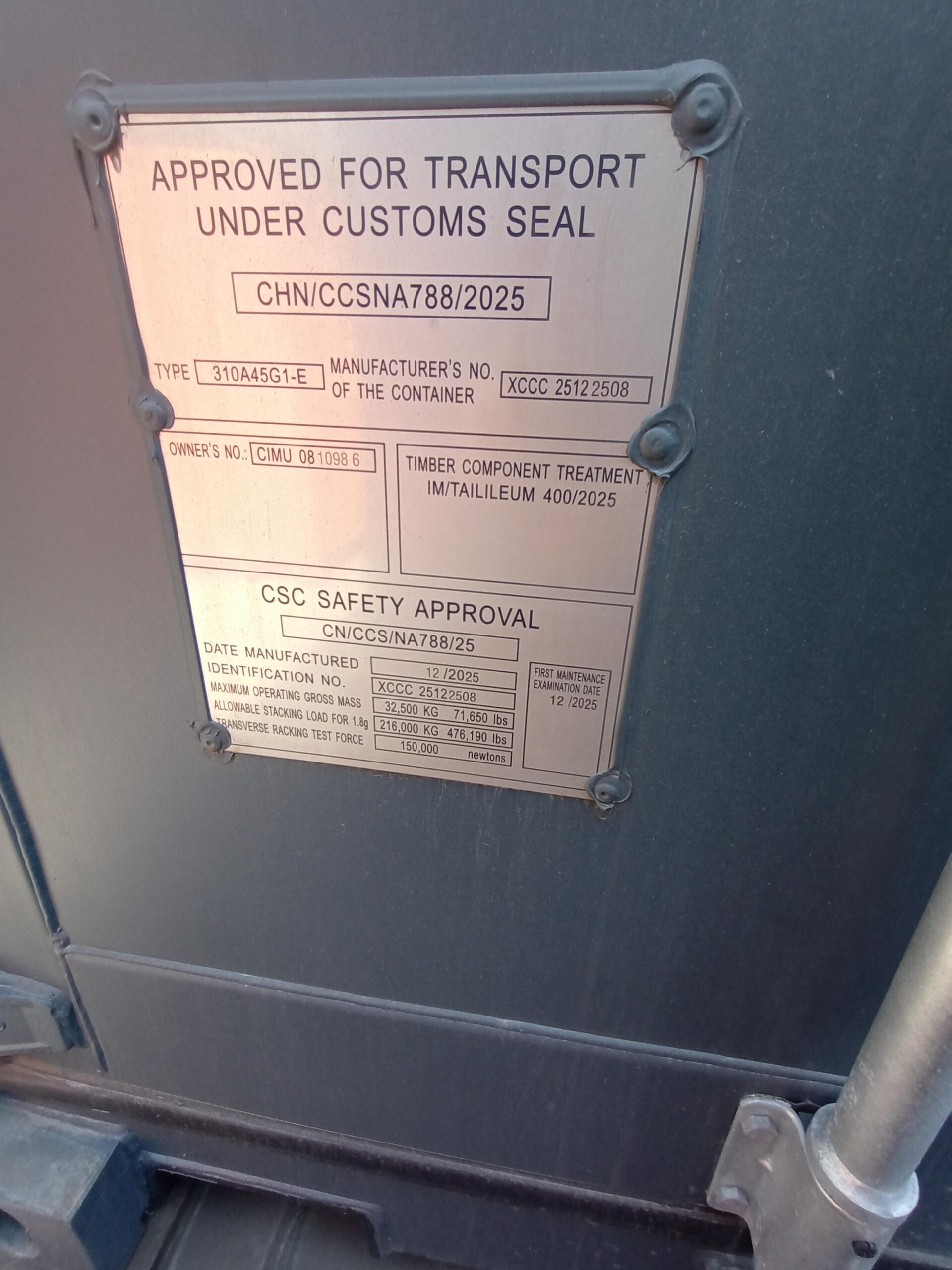 | Stan kontenera | Nowy |