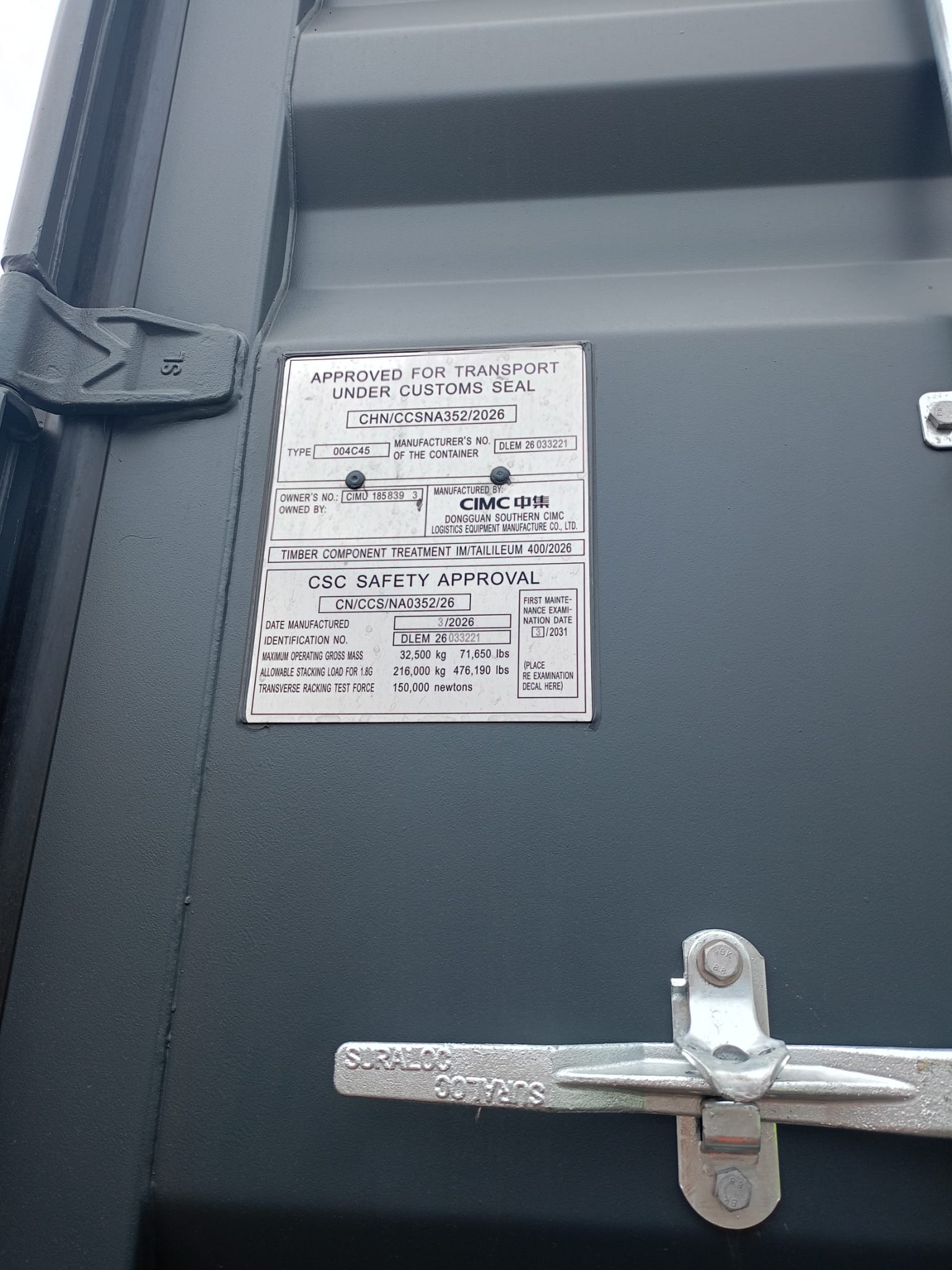 | Typ kontenera | 12m/40'HC |
