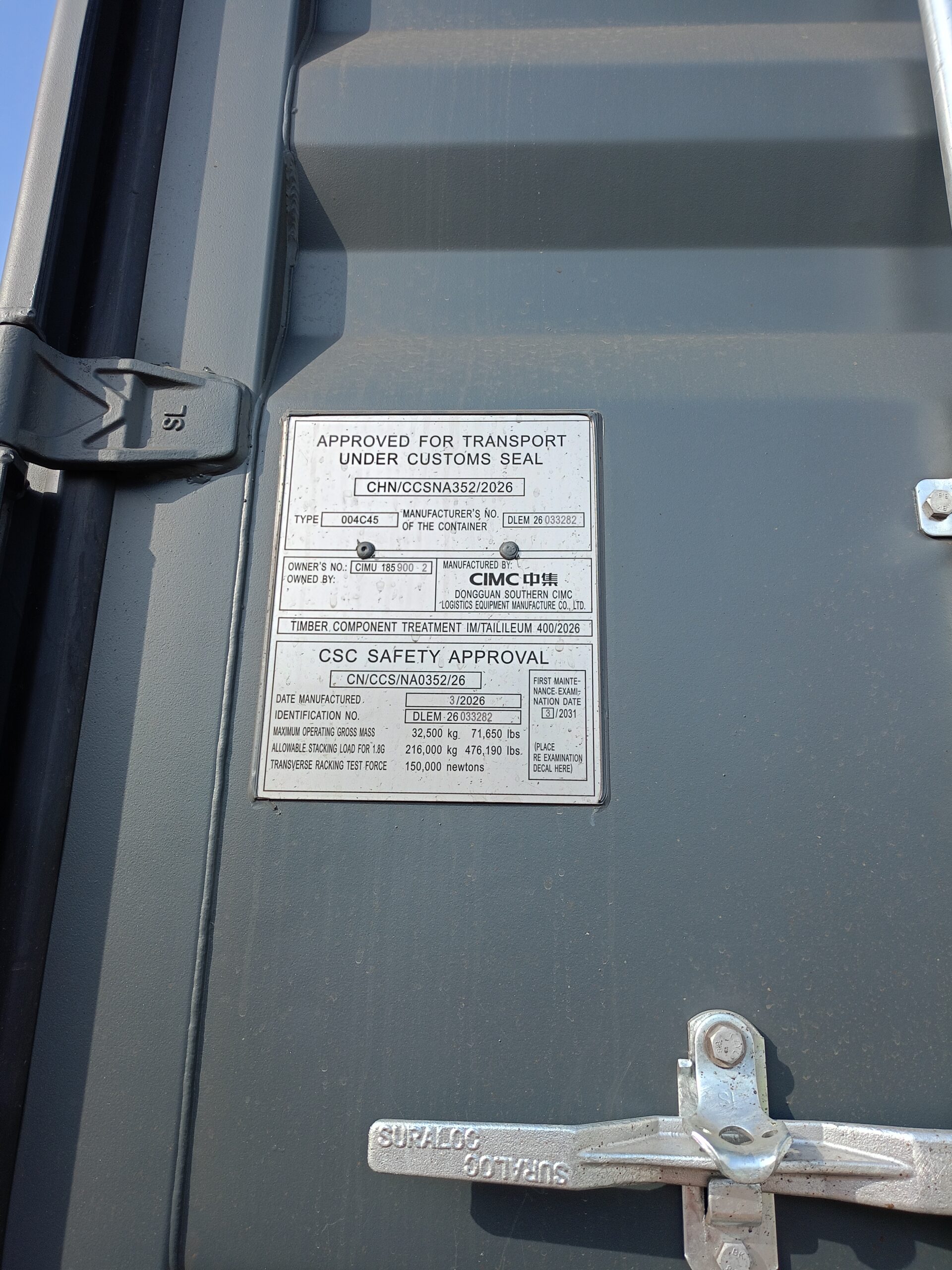 | Stan kontenera | Nowy |