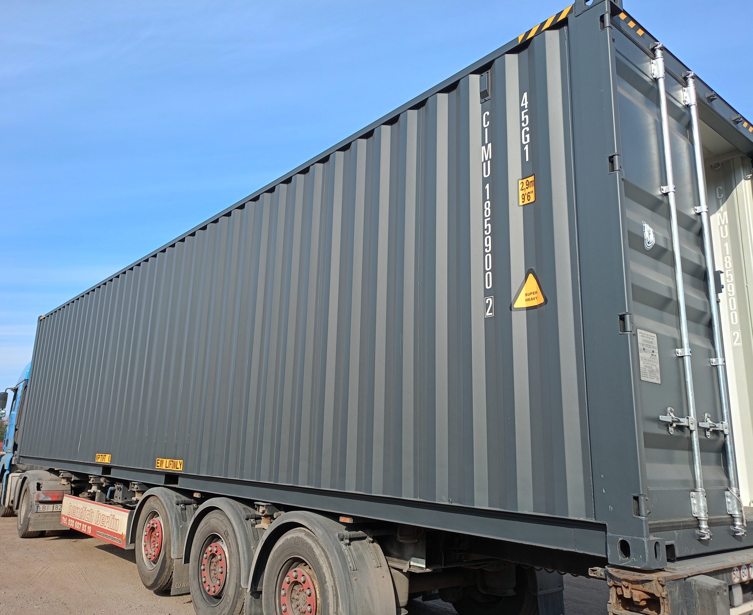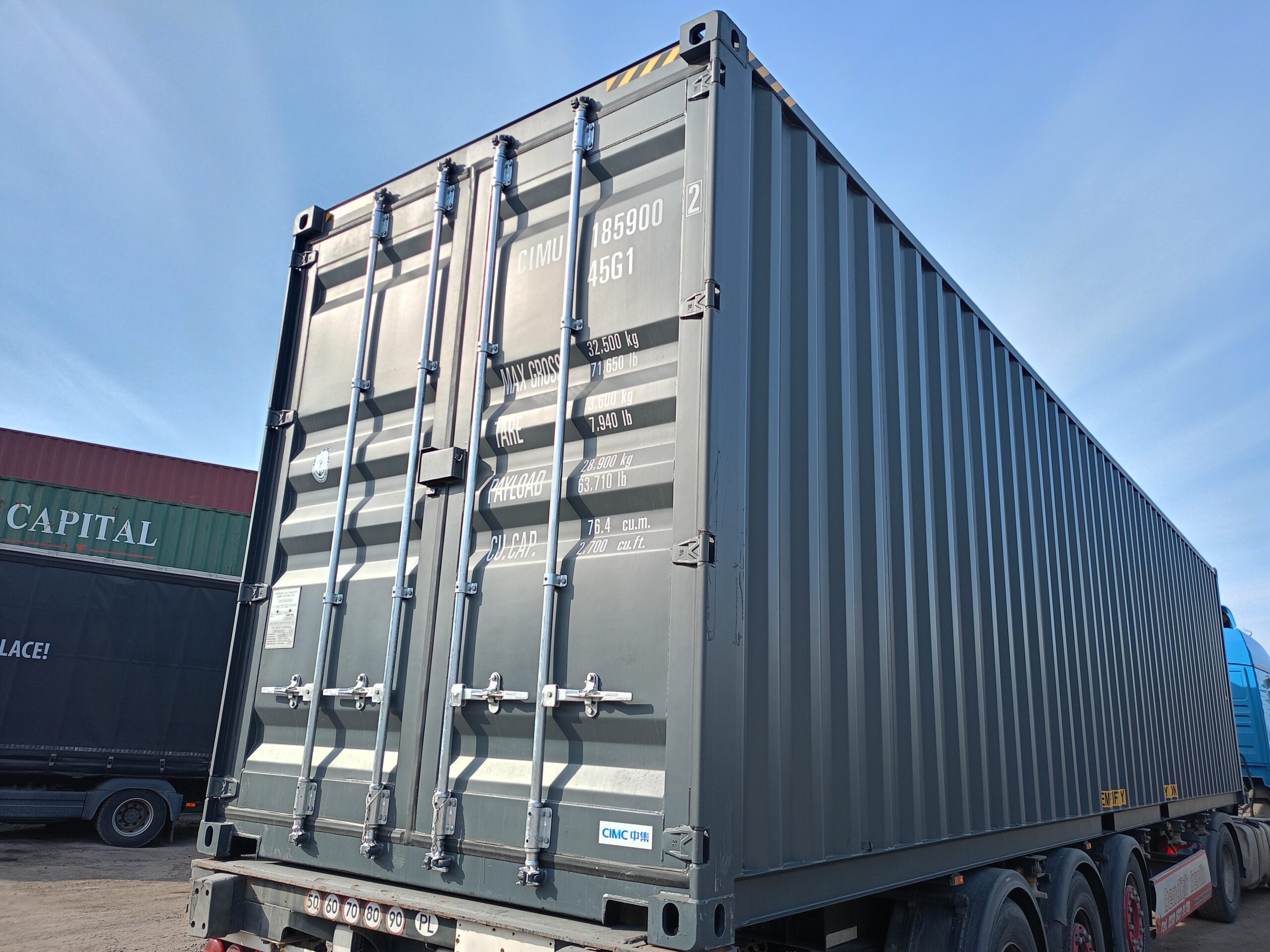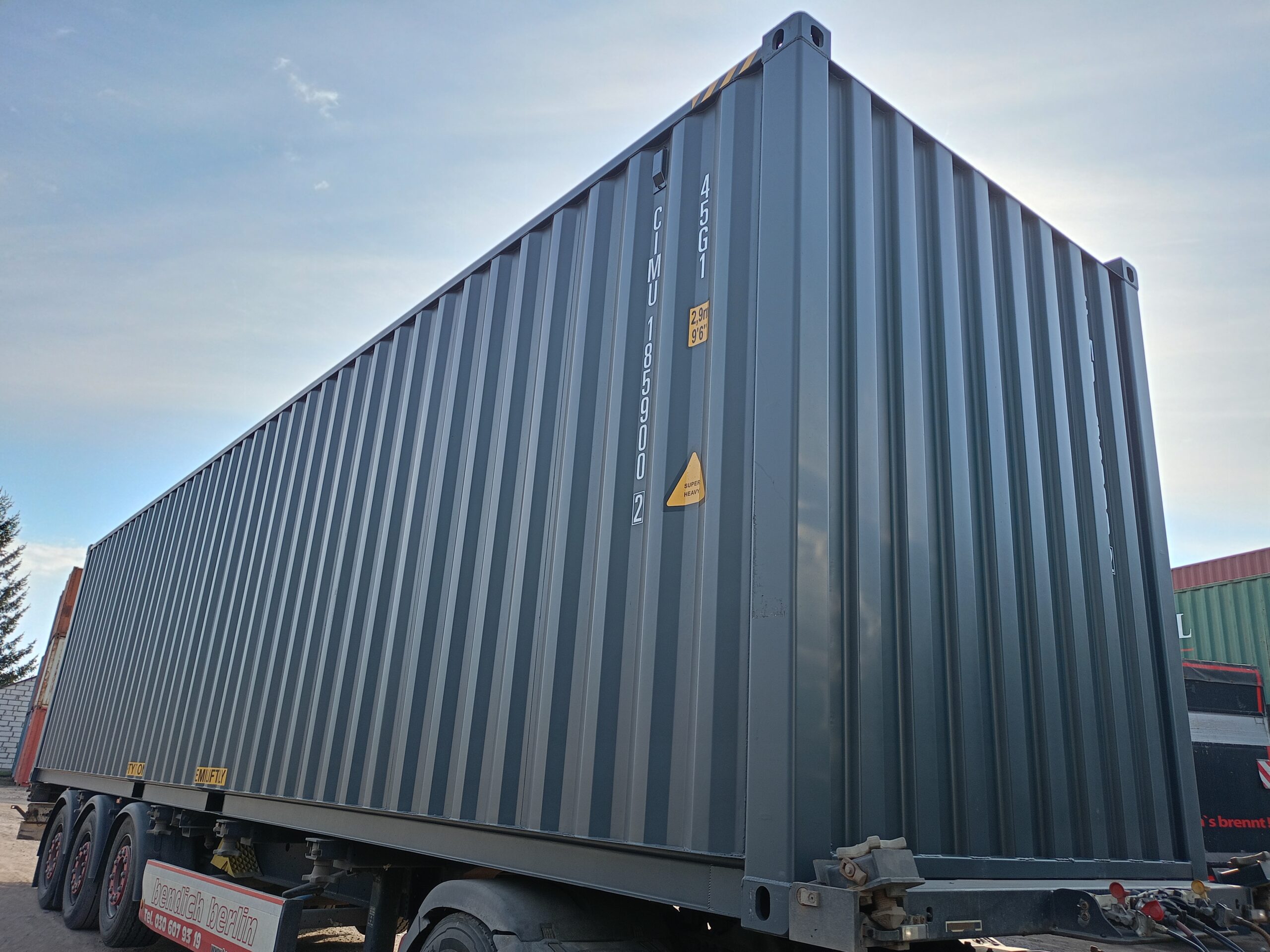 - 40-stopowe kontenery typu High Cube – mają dodatkową wysokość (w porównaniu do standardowych kontenerów), co zapewnia więcej przestrzeni w pionie i jest szczególnie przydatne przy transporcie lub magazynowaniu wysokich ładunków.