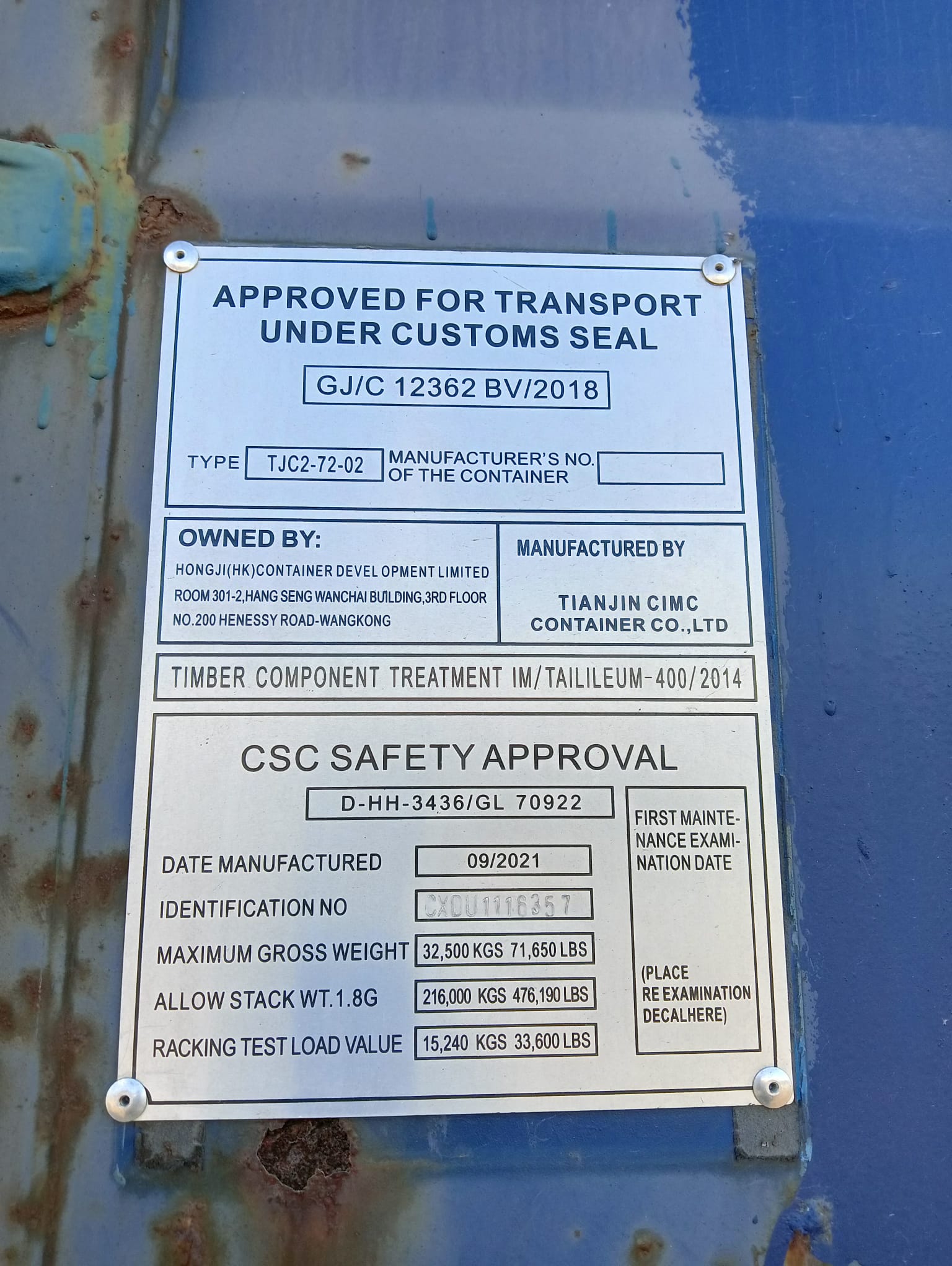 | Stan kontenera | Używany |