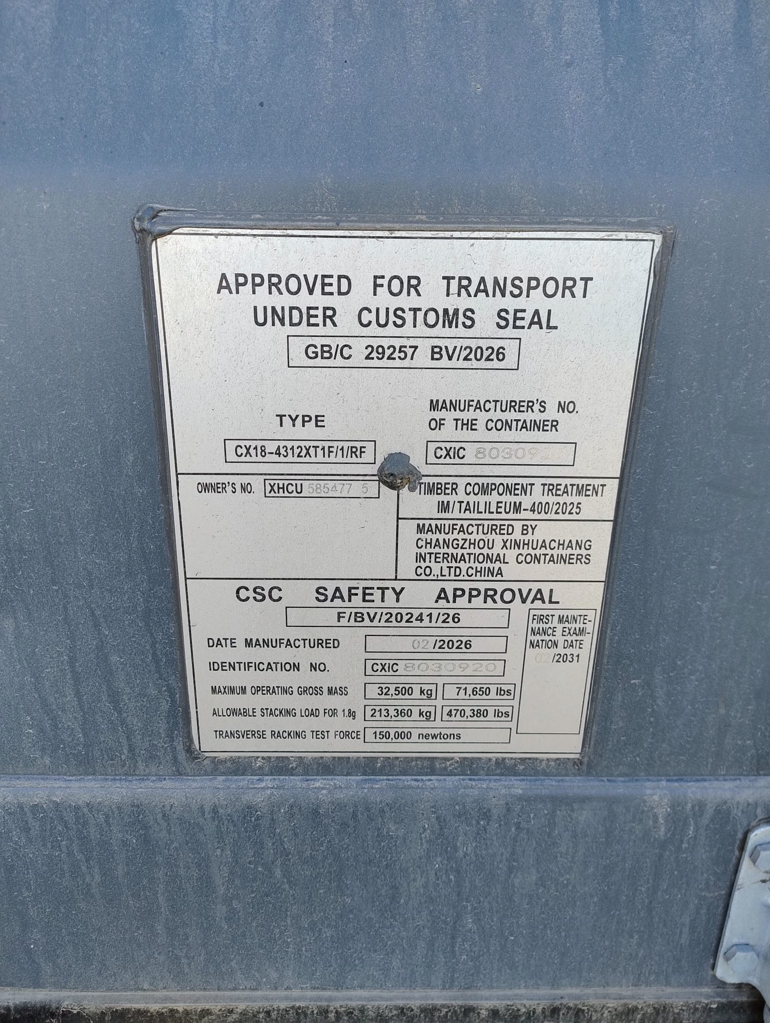 | Stan kontenera | Nowy |