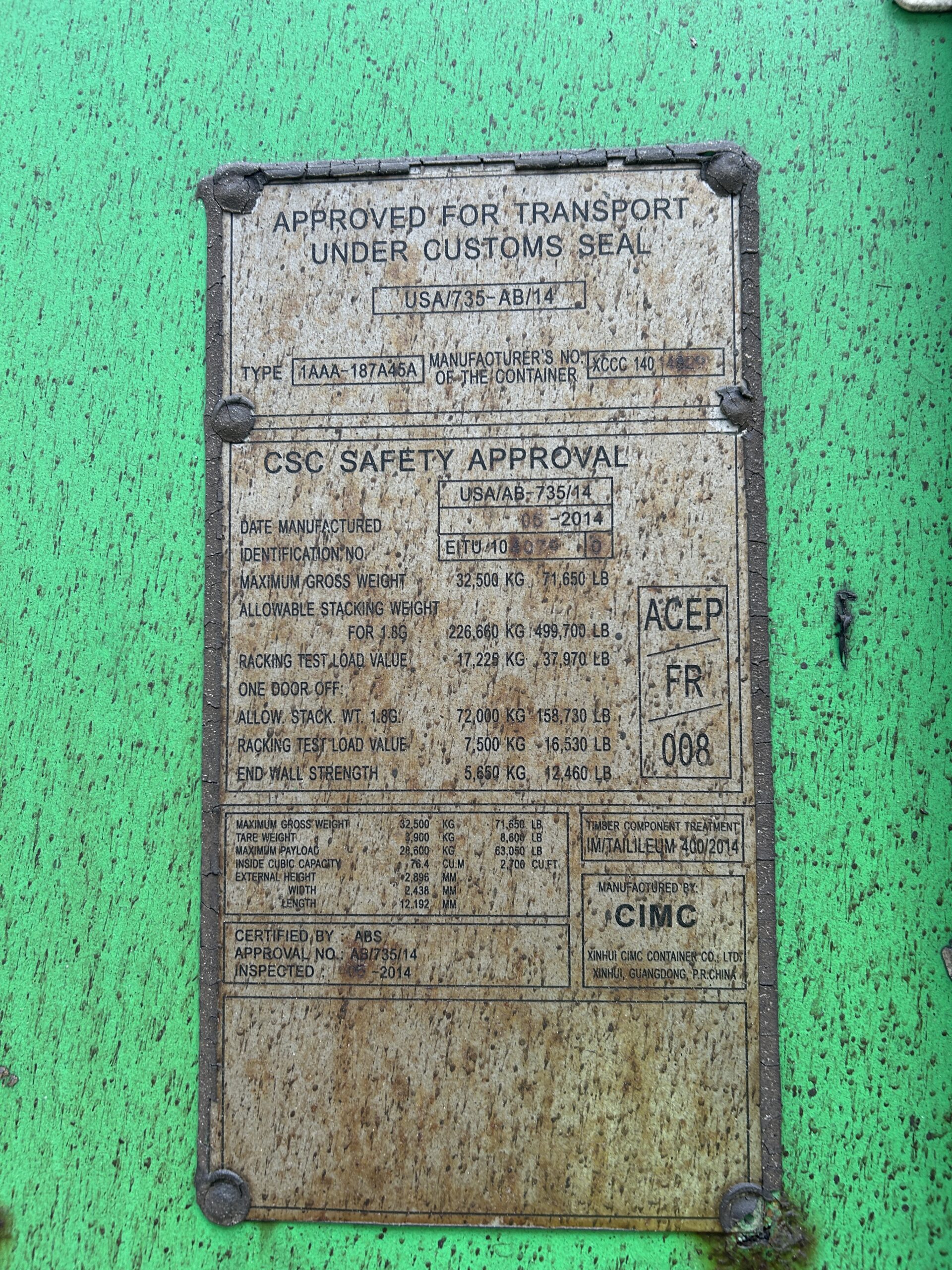 Wymiary zewnętrzne: 12.192m x 2.438m x 2.896m