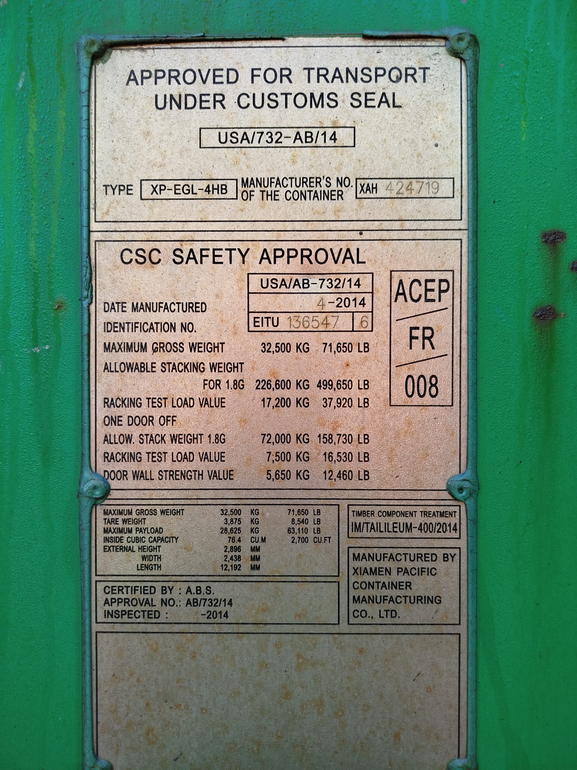 Wymiary zewnętrzne: 12.192m x 2.438m x 2.896m