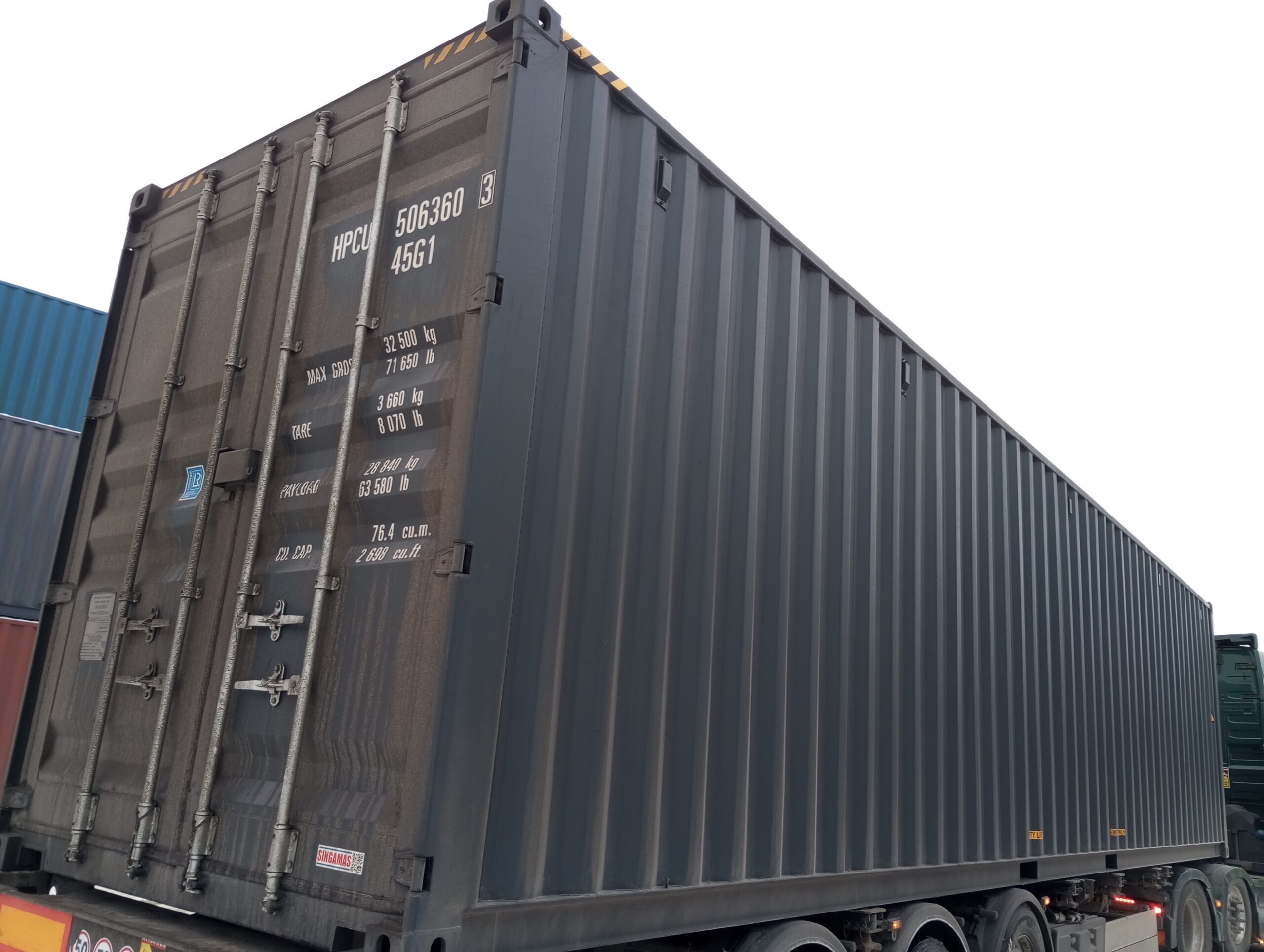 - 40-stopowe kontenery typu High Cube – mają dodatkową wysokość (w porównaniu do standardowych kontenerów), co zapewnia więcej przestrzeni w pionie i jest szczególnie przydatne przy transporcie lub magazynowaniu wysokich ładunków.