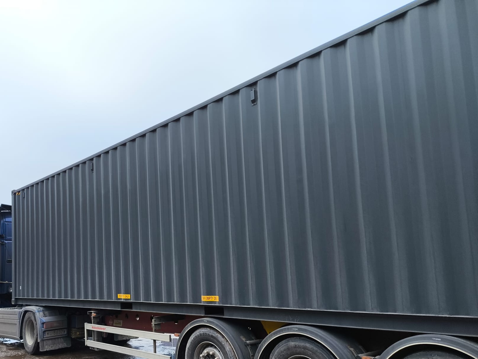 - 40-stopowe kontenery – w tym kontenerze możesz załadować większą ilość towaru do transportu. Klienci często wybierają je jednak do adaptacji na warsztat, garaż, a nawet na przestrzeń biurową.
