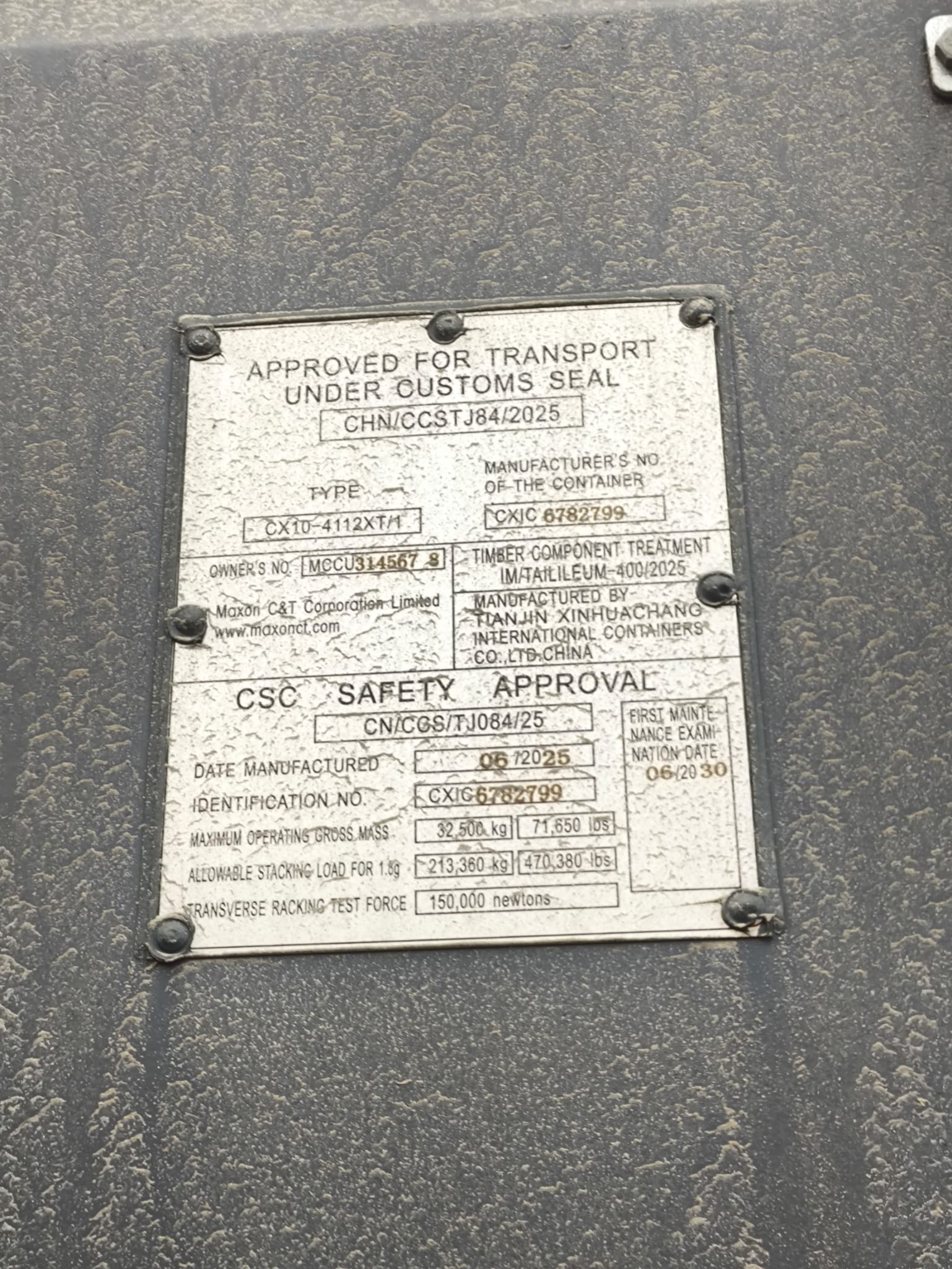 | Stan kontenera | Nowy |