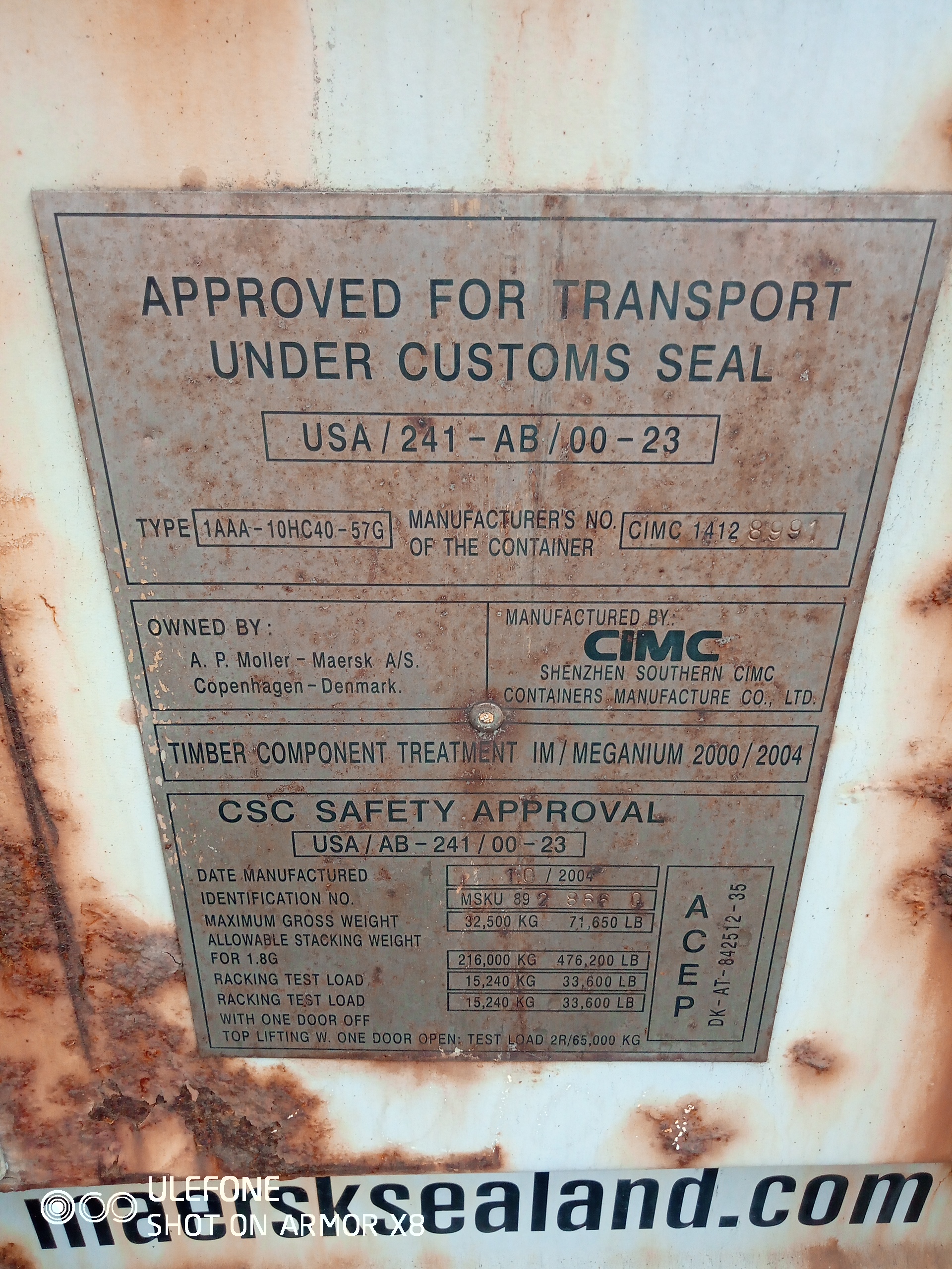 12m (40’HC) Kontener morski MSKU8928660