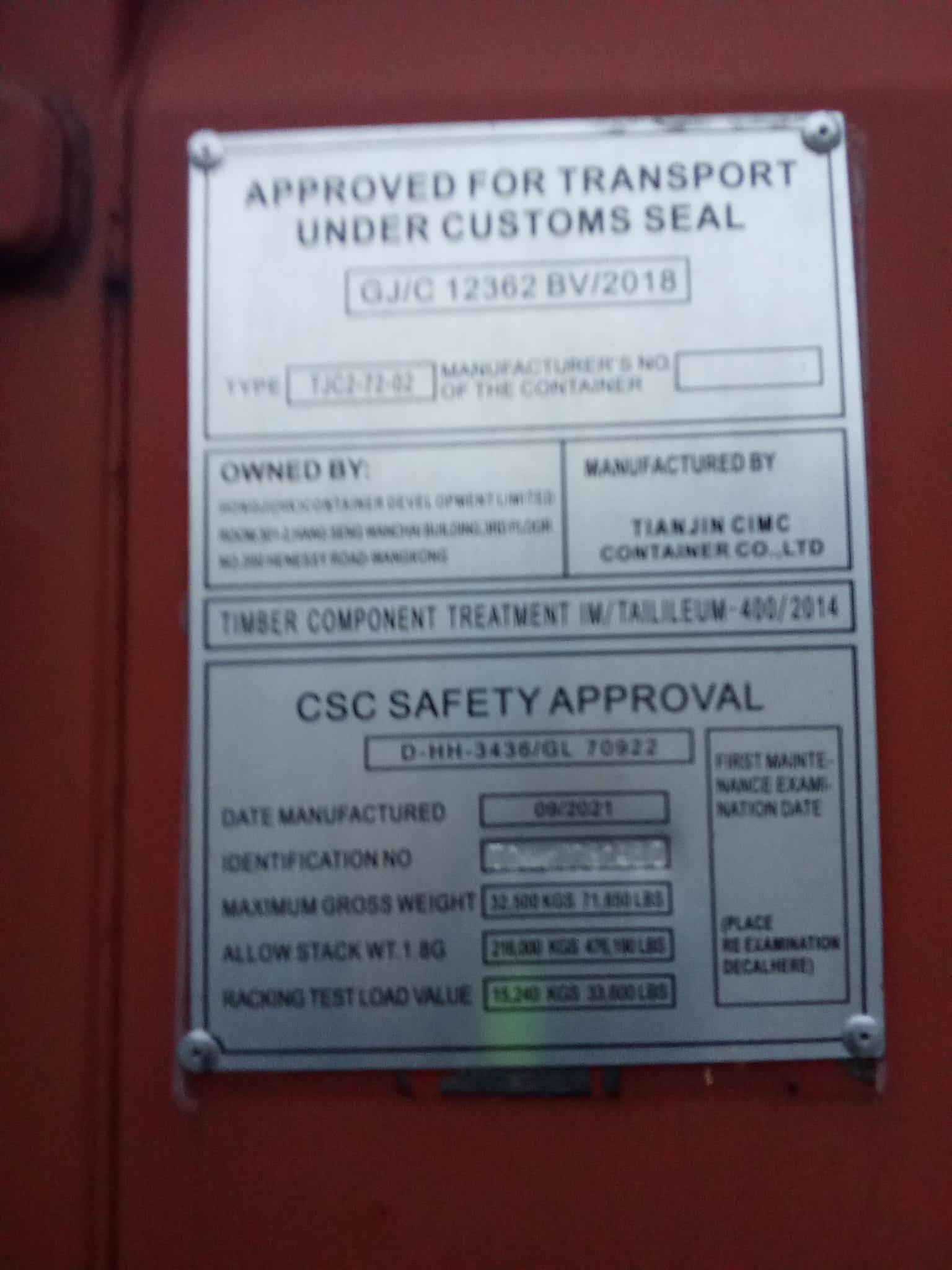 | Typ kontenera | 12m/40'HC |