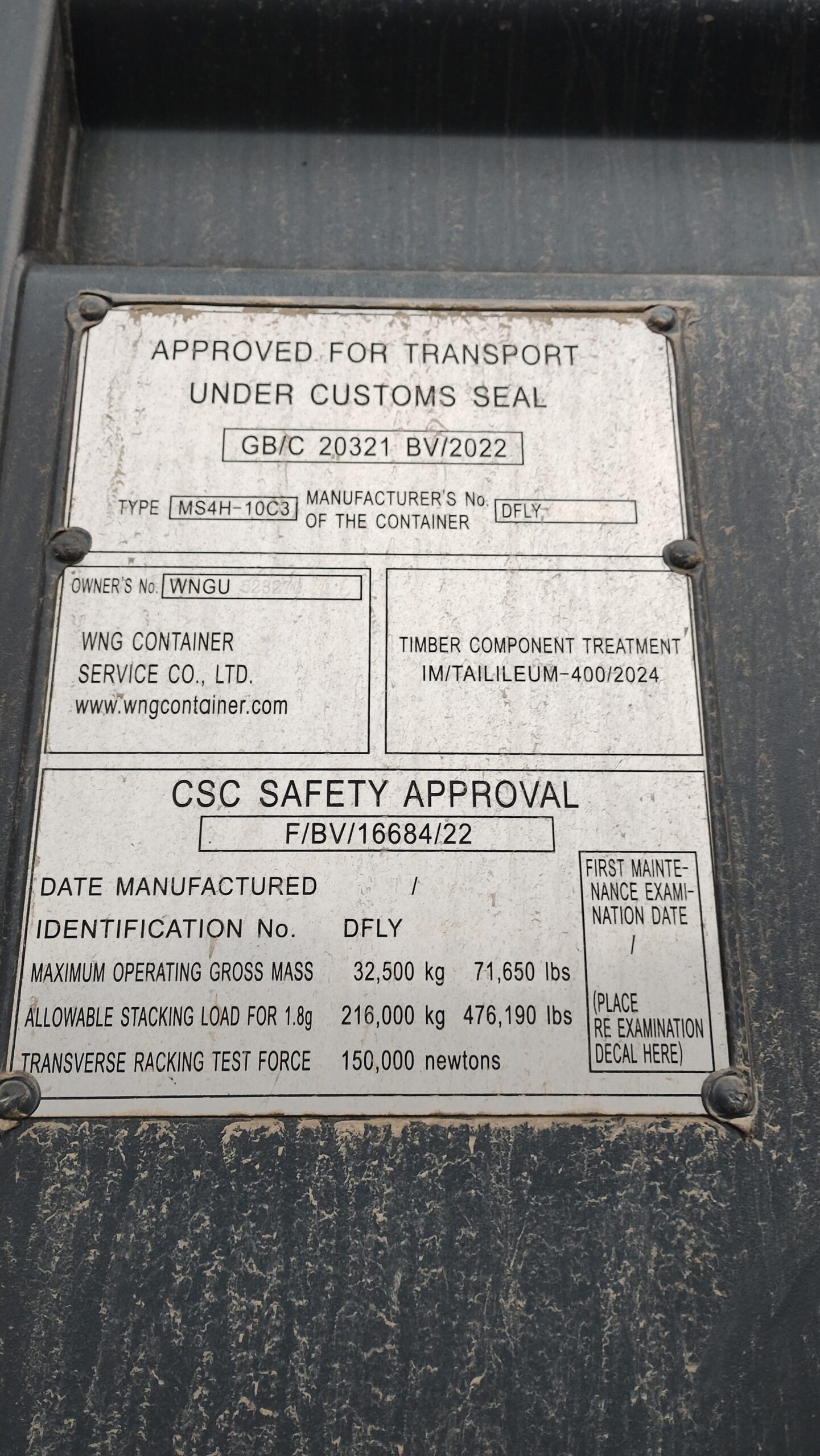 | Stan kontenera | Nowy |