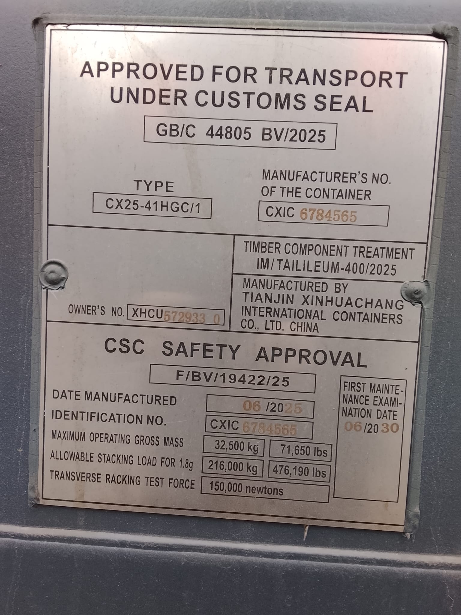 | Stan kontenera | Nowy |