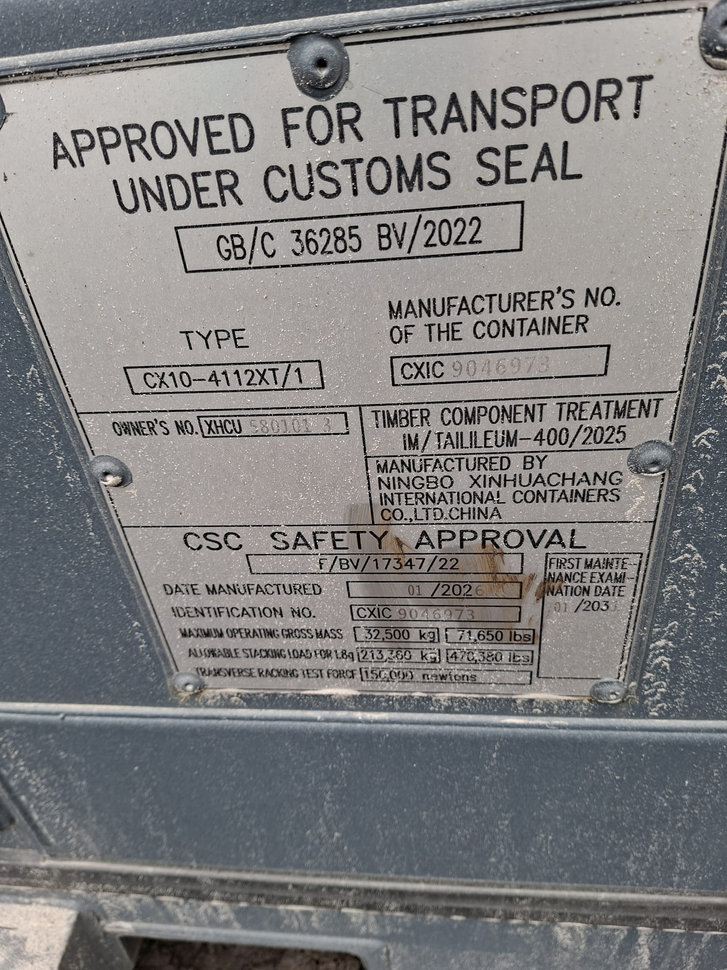 | Stan kontenera | Nowy |