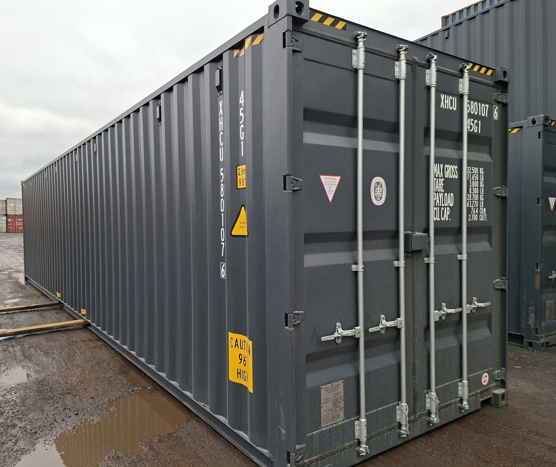 - 40-stopowe kontenery typu High Cube – mają dodatkową wysokość (w porównaniu do standardowych kontenerów), co zapewnia więcej przestrzeni w pionie i jest szczególnie przydatne przy transporcie lub magazynowaniu wysokich ładunków.