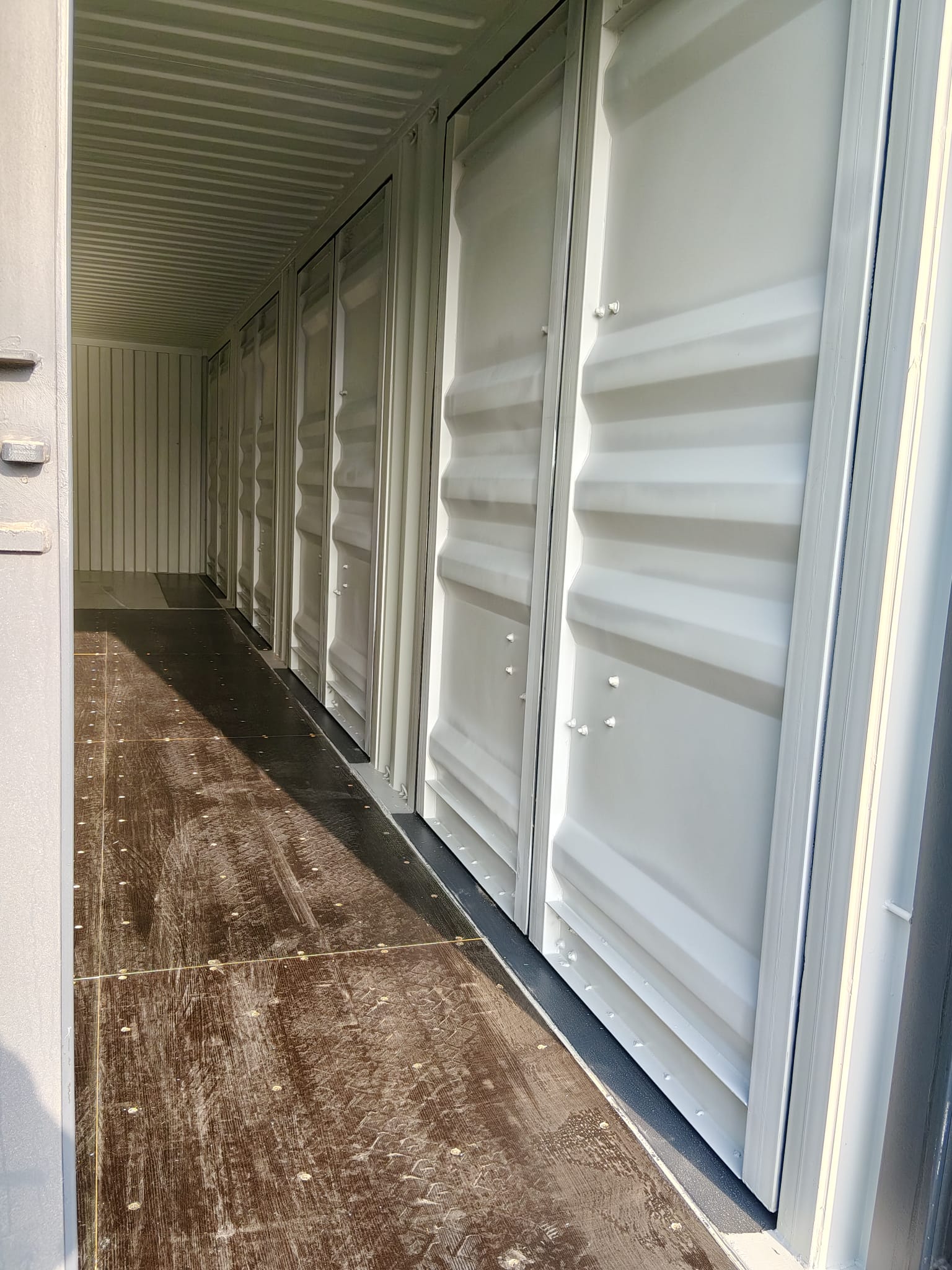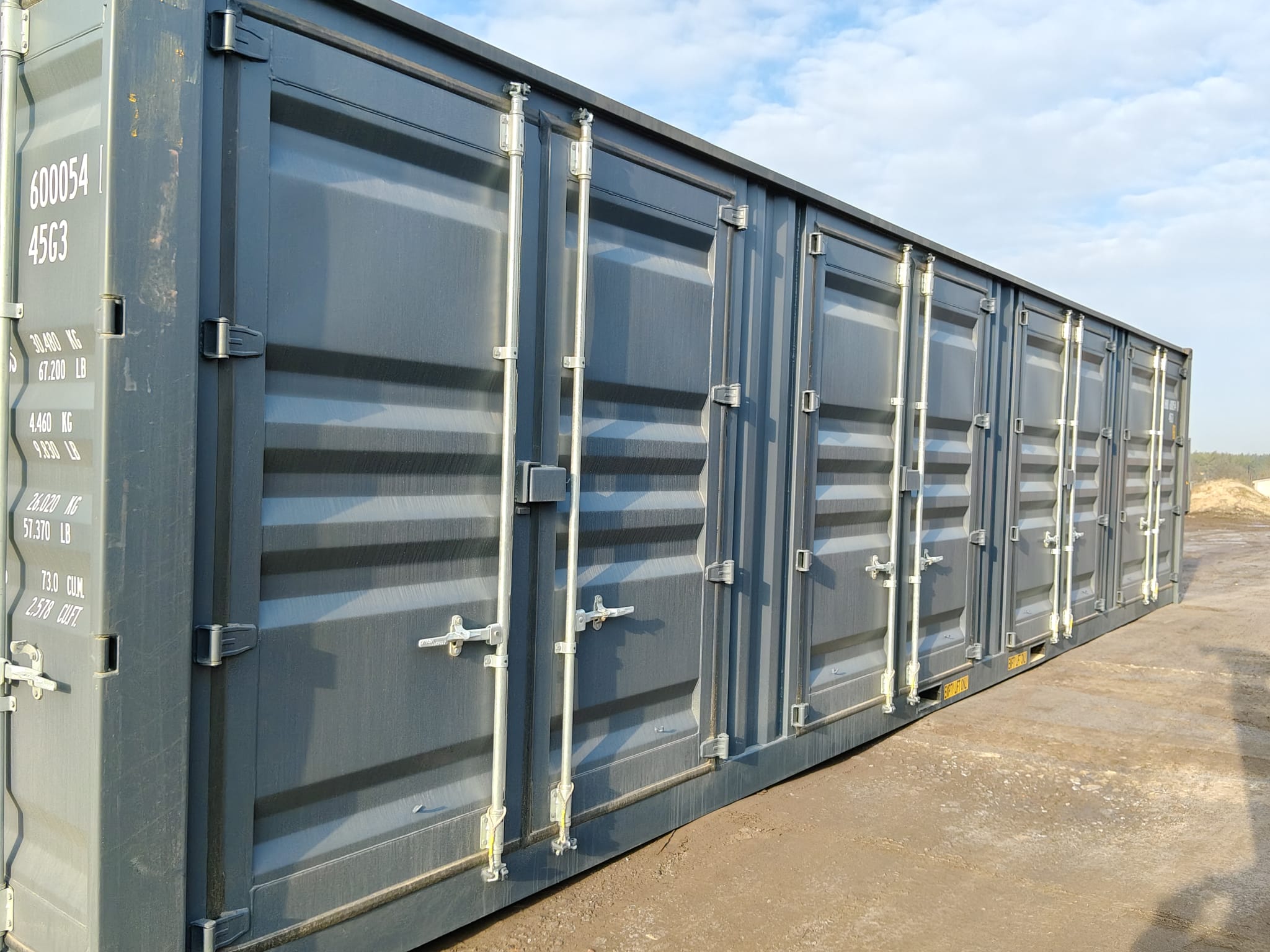 - 40-stopowe kontenery – w tym kontenerze możesz załadować większą ilość towaru do transportu. Klienci często wybierają je jednak do adaptacji na warsztat, garaż, a nawet na przestrzeń biurową.
