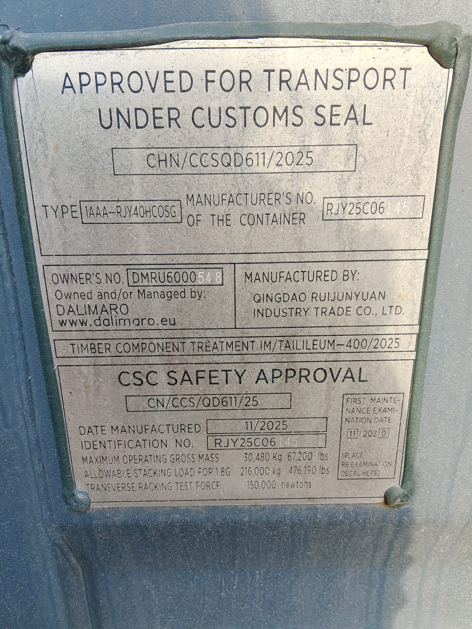 Wymiary zewnętrzne: 12.192m x 2.438m x 2.896m