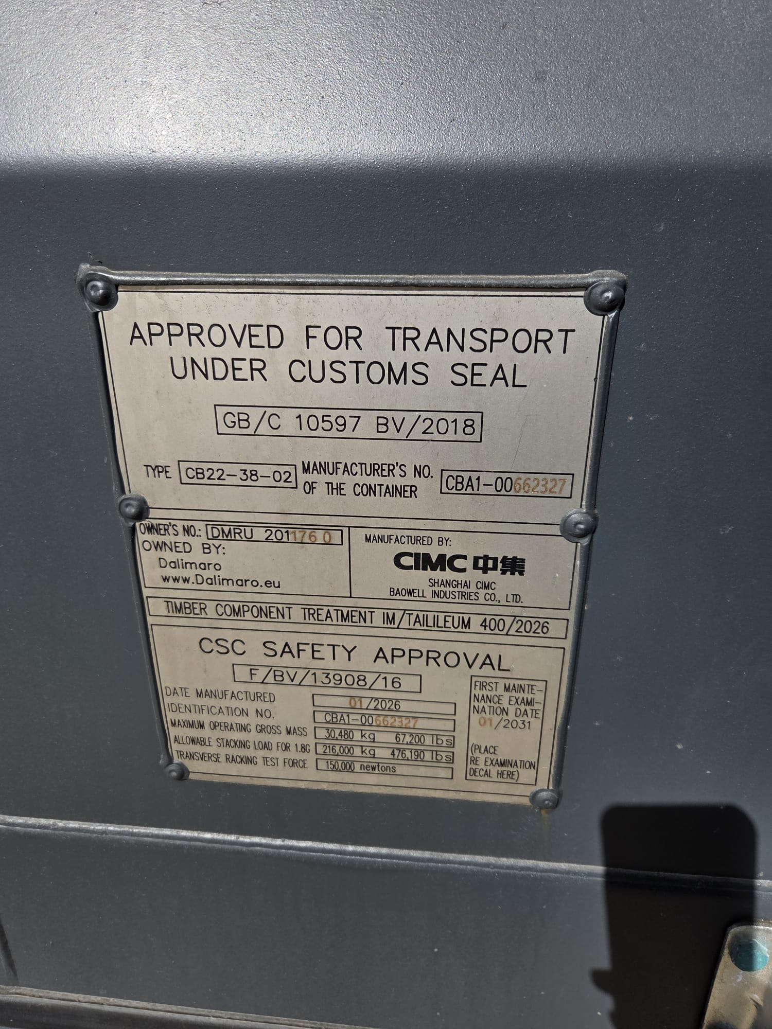 | Stan kontenera | Nowy |