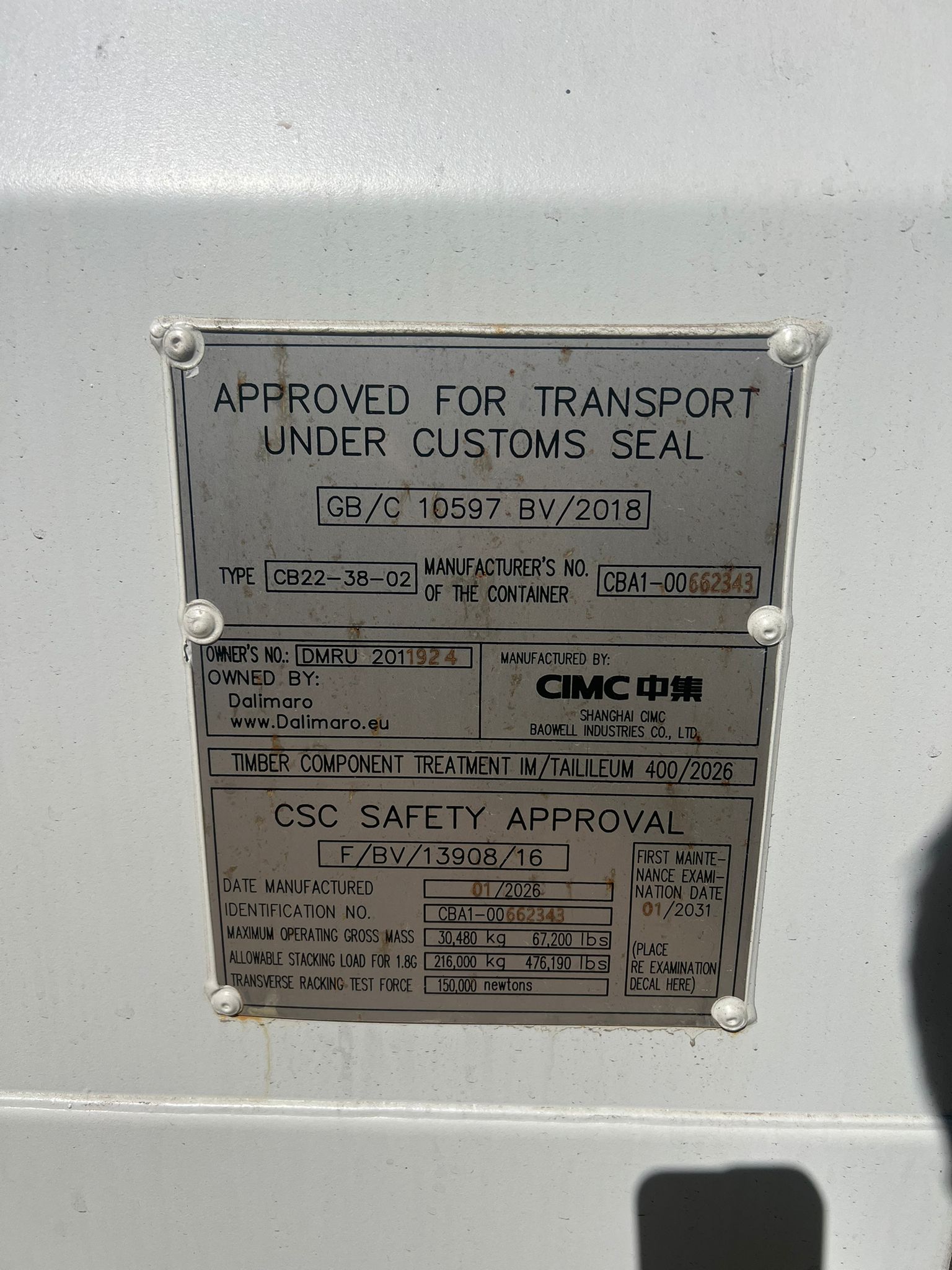 Wymiary zewnętrzne: 6,058m x 2,438m x 2,591m