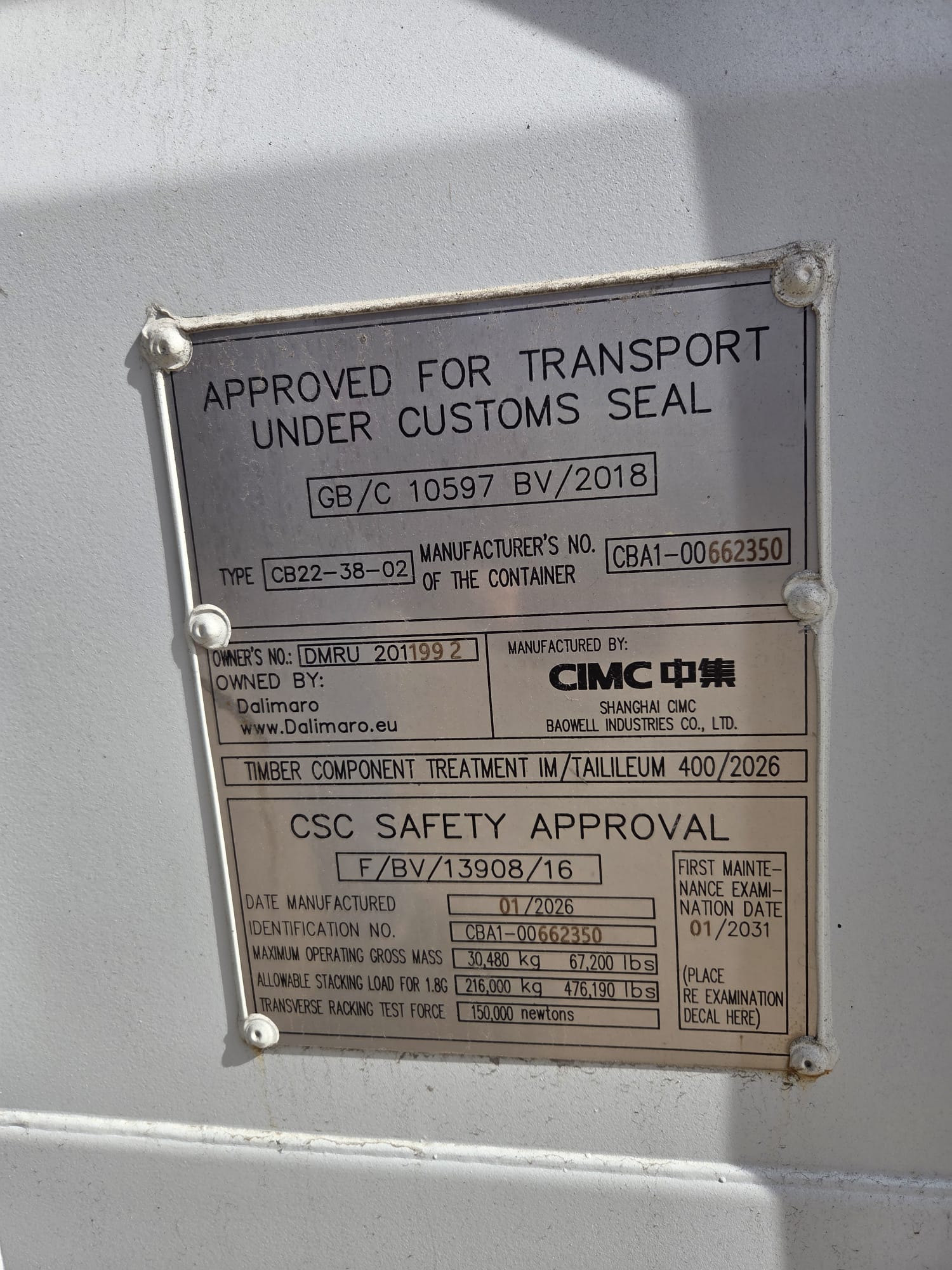 | Stan kontenera | Nowy |