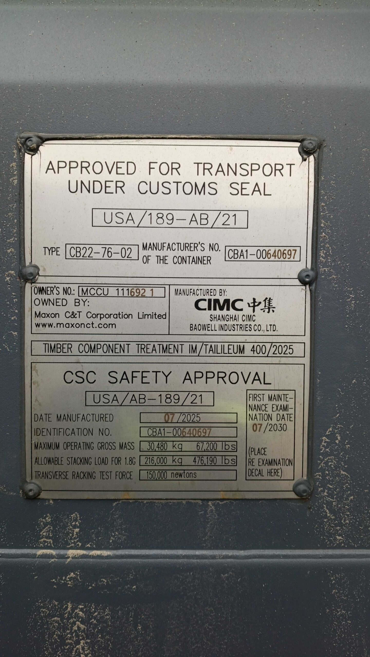 | Stan kontenera | Nowy |