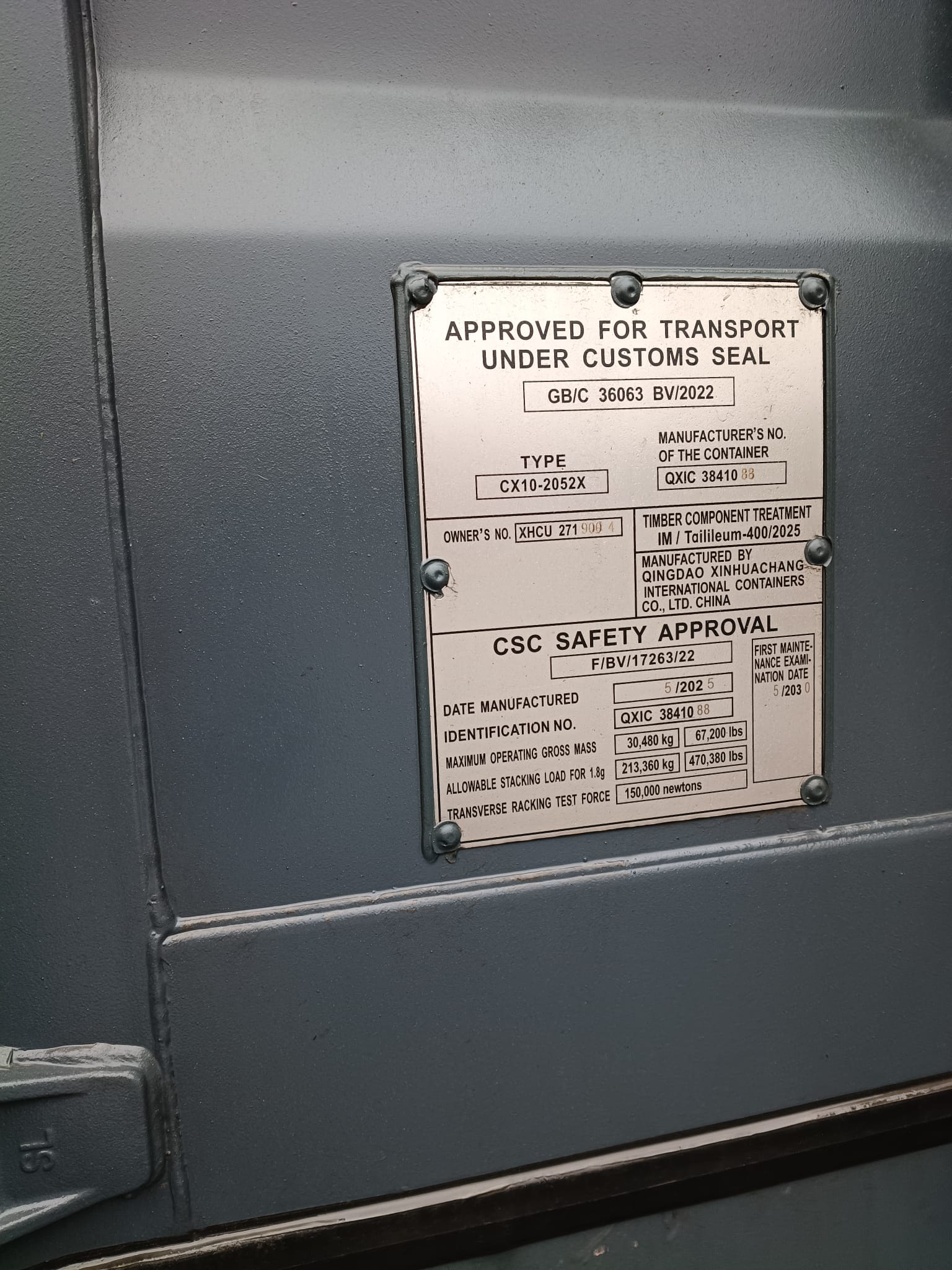 6m (20’DC) Kontener Morski XHCU2719004