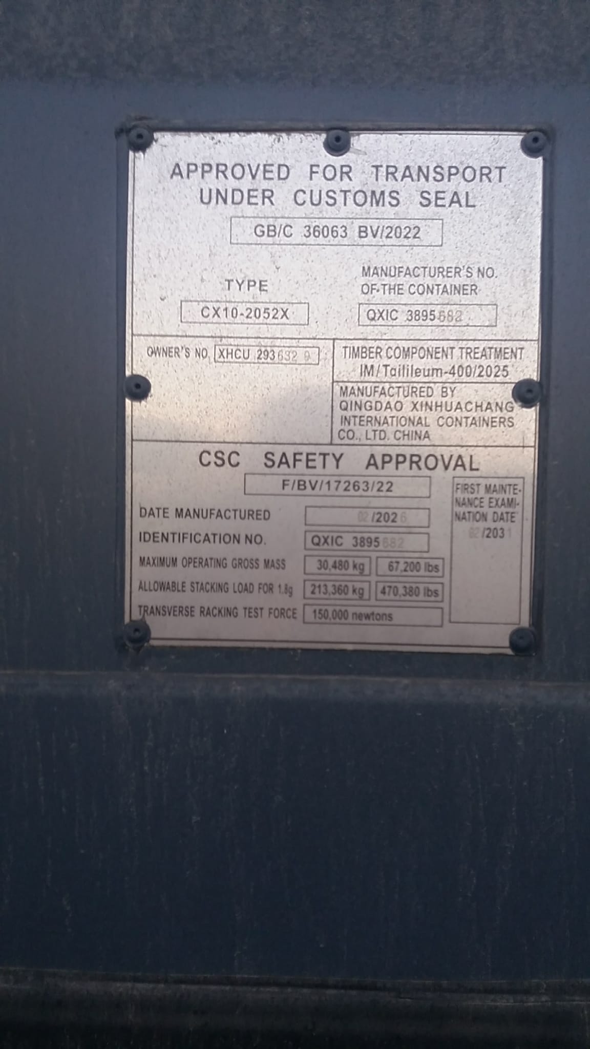| Stan kontenera | Nowy |
