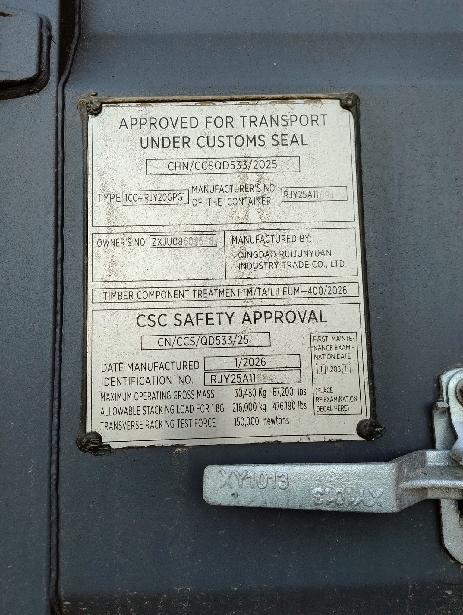 | Stan kontenera | Nowy |