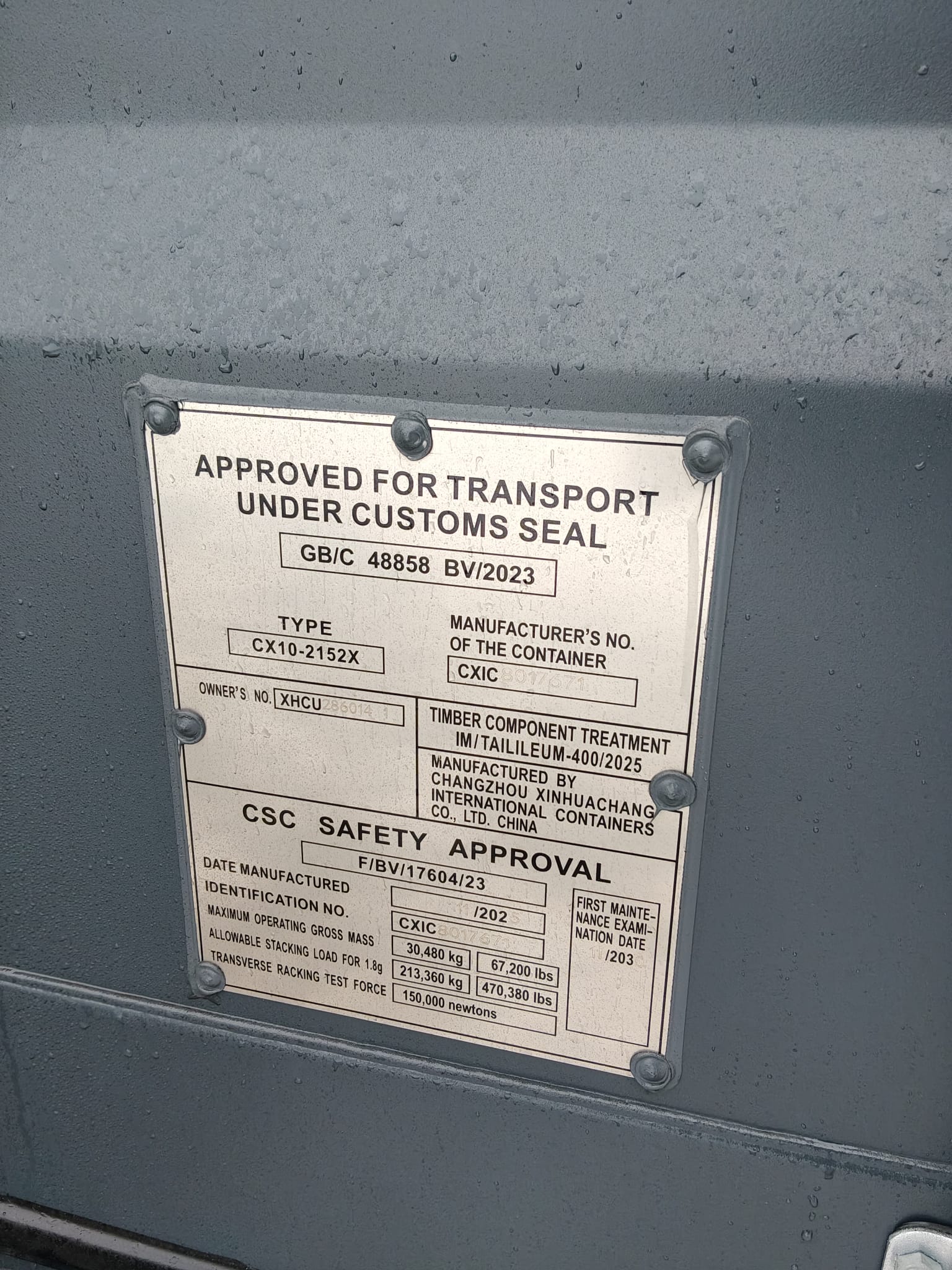 | Stan kontenera | Nowy |