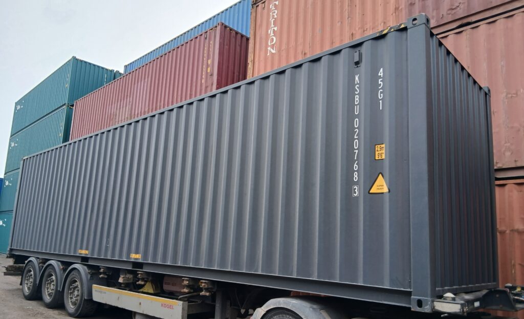 - Kontenery 45’ – zapewnia jeszcze więcej miejsca niż standardowy kontener 40′, dlatego jest idealny dla tych osób, które potrzebują składować dużą ilość ładunku w jednym kontenerze.