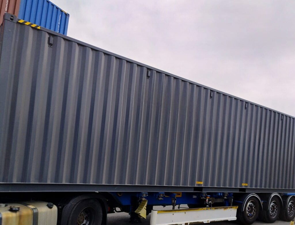 - Kontenery morskie 40′ – oferują podwójną pojemność w porównaniu do wersji 20′, dlatego świetnie sprawdzają się w dużych projektach logistycznych i jako magazyn zewnętrzny do różnych typów towaru.